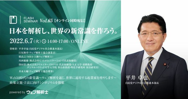 2022/6/7(火)14:00~17:00 FlashセミナーVol.65 【無料】日本を解析し、世界の新常識を作ろう。【オンライン同時配信】