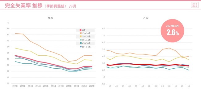 2022年3月度の有効求人倍率は1.22倍。完全失業率は2.6% 労働市場データレポート(2022年3月度版)