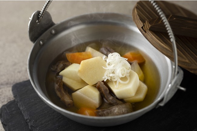 今回は、山形県にスポットをあて、関西では馴染みの少ないブランド和牛をはじめ、滋味豊かな旬の山海の幸や郷土料理をシェフの創意あふれる料理でご紹介いたします。先付には、さくらんぼの風味感じる甘酢漬けと庄内地域で祭りや正月などに食べる郷土料理「玉子寒天」の2種類をご用意。魚料理には、庄内浜で水揚げされたのどぐろや鮑などのソテーを米粉のガレットにのせ、山形県産「南蛮味噌」と、山形定番料理「だし」を添えた一品に。2種の異なる風味をお楽しみいただけます。メインには、きめ細やかな肉質が魅力の尾花沢牛の中でもワンランク上のブランド和牛「雪降り和牛尾花沢」をステーキで。厳しい寒さが育んだ口溶け軽やかな極上の脂、やわらかな肉質をご堪能ください。〆のご飯には山形県産「雪若丸」を目の前で炊き上げ、山形県を代表する「芋煮」とともに提供いたします。また、お料理と合わせて山形県のお酒とお飲み物もご用意しております。