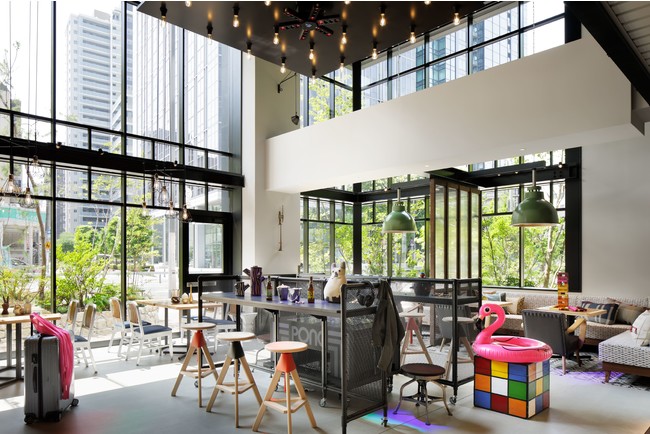モクシー大阪新梅田の開放的なラウンジ空間の中で、 大人な時間をお楽しみください。