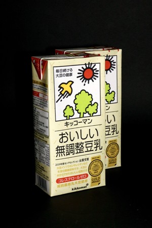 キッコーマン豆乳のパッケージには、「明るく健康な未来」を表す赤い太陽、「希望と躍動感に満ちた生命」を表す黄色い鳥、「豊かな自然の象徴」である緑の森が描かれています。