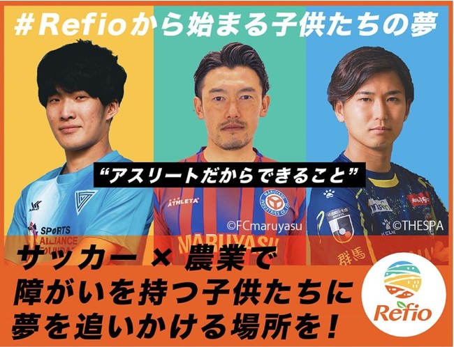 チーム・団体やアスリートを支援するスポーツ専門クラウドファンディングを展開するスポチュニティ株式会社(東京都中央区、以下スポチュニティ)は、現役プロサッカー選手の多々良敦斗、久保田和音、パラアスリートの中澤朋希で設立したRefioが主催する「アスリートだからできること サッカー×農業で障がいを持つ子供たちに夢を追いかける場所を! #Refioから始まる子供たちの夢」のクラウドファンディングの支援募集プロジェクトを5月28日より実施します。