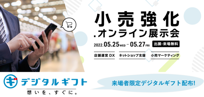 株式会社デジタルプラス(代表取締役社長:菊池 誠晃、本社:東京都渋谷区、東証グロース: 証券コード 3691、以下「当社」)は、5月25日から開催される「小売強化ドットオンライン展示会」に「デジタルギフト(R)︎」を出展いたします。