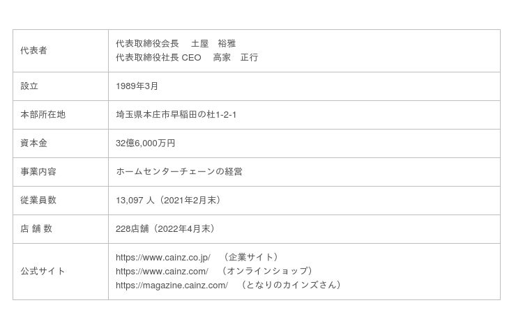 株式会社カインズは、28都道府県下に228店舗を展開するホームセンターチェーンです。