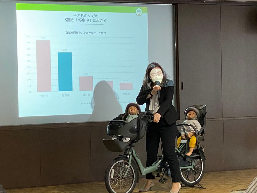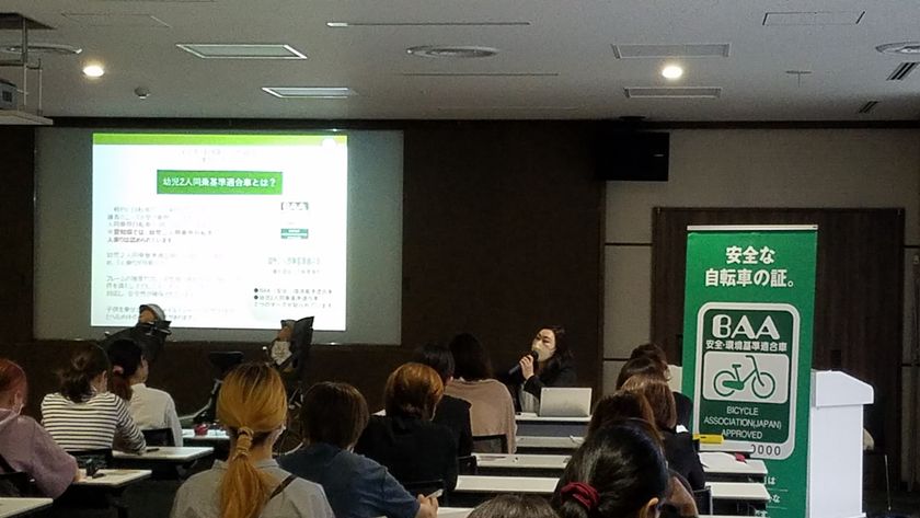 子育て世帯では、幼稚園、保育所への送迎などで利用する子乗せ自転車、特に電動アシスト自転車の需要が高まっています。一方で転倒事故なども増えております。本セミナーでは、講師の遠藤 まさ子(自転車の安全利用促進委員会メンバー/自転車ジャーナリスト)が、改めて交通ルールや子どもを乗せる際に注意すべき点など、実演を交えて解説、講演しました。