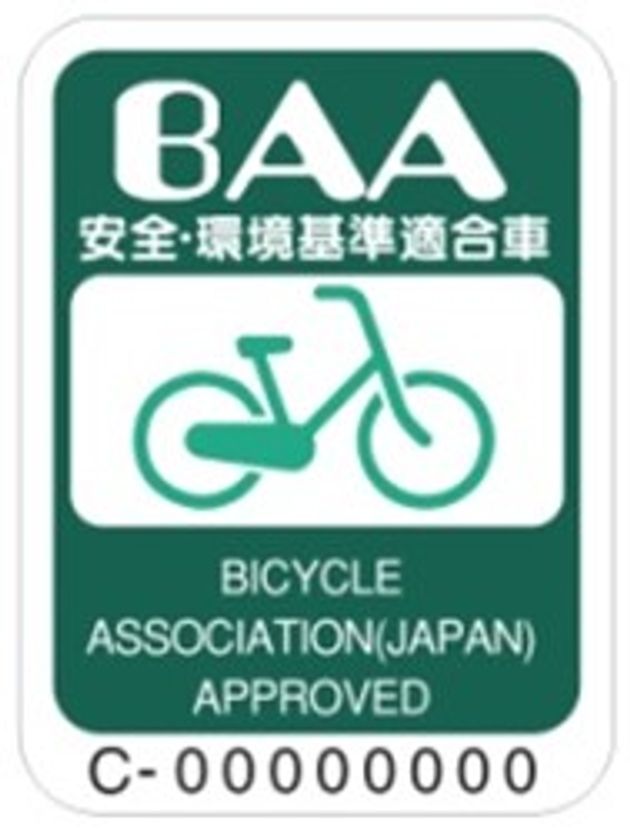 BAAマークは、一般社団法人自転車協会が制定し、同協会が定める自転車安全基準に適合した自転車に貼られています。自転車安全基準の検査項目は全部で約90項目もあり、安全・安心な自転車の目印として認知されています。