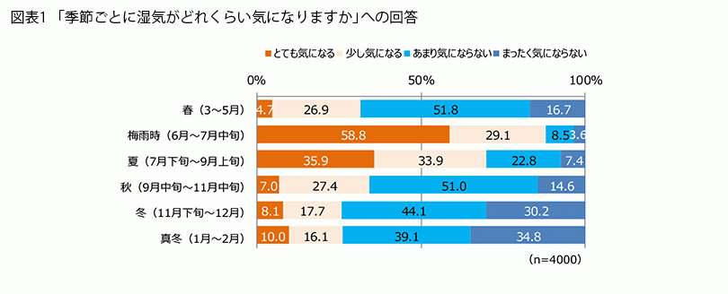 湿度が高くなる季節、気になることは? ~6割が梅雨時「湿度がとても気になる」、湿度の悩みは…?~