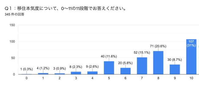 2020年から始まったコロナ禍も2年目。総務省が1月28日に発表した2021年の住民基本台帳の人口移動報告によると、東京23区が外国人を含めた集計を開始した2014年以来初となる転出が転入を上回り、と発表したように、都心から人が出ていく動きが進んでいます。SMOUTユーザー対象のインターネット調査*で移住本気度を11段階で聞いたところ、最も高い10の数値を回答した人が31%、9の数値も合わせると39.7%になり、移住への本気度の高さが伺えます。