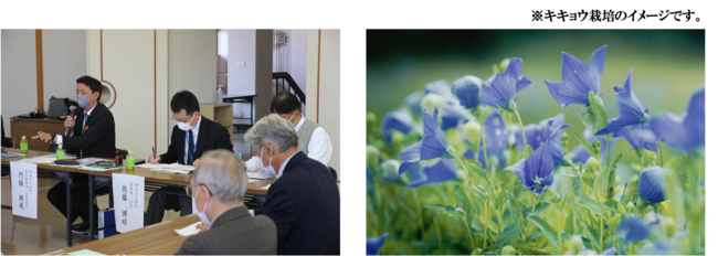 また交付に先立ち、4月下旬には「第1回キキョウ栽培に関する情報交換検討会」を秋田県八峰町で開催しました。