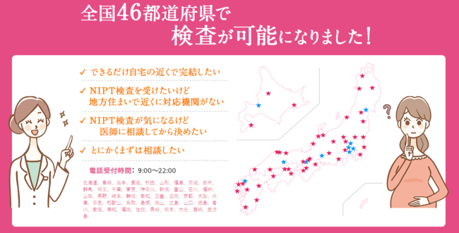 医療法人社団福美会ヒロクリニックNIPTのNIPT(新型出生前診断)検査は46都道府県(65箇所)で受検ができるようになりました。