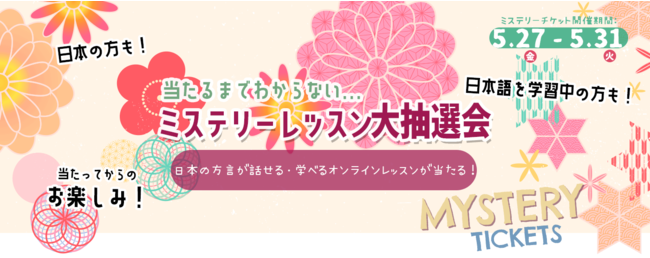 今回は、上記「オンラインレッスンで日本の方言文化を学ぼう」特集で掲載されている単発レッスンを対象にミステリーチケット抽選会を開催しています。