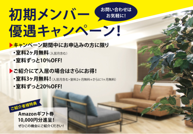キャンペーン中の入居申し込み者には特別優待!さらにご紹介キャンペーンも実施!