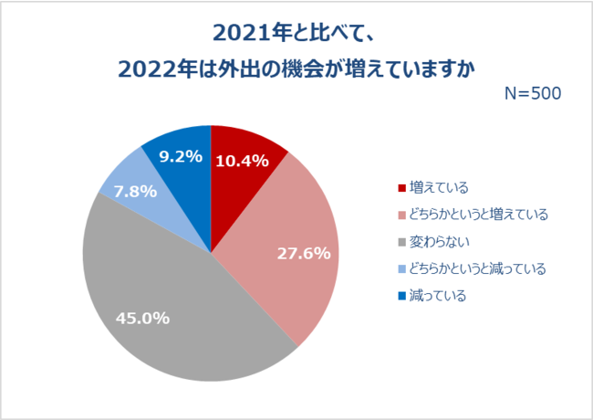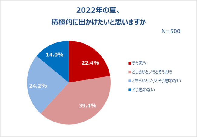 約4割、2022年は外出が「増えている」。6割以上が2022年の夏は「積極的に出かけたい」