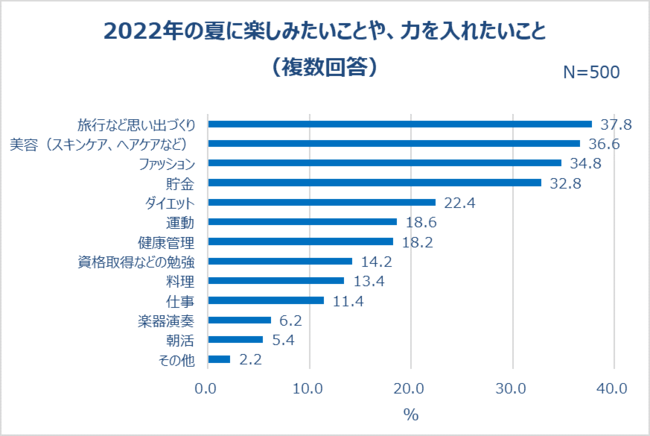 2022年夏に楽しみたいこと・力を入れたいこと「旅行など思い出づくり」