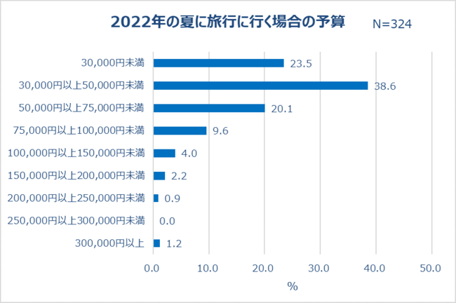 2.6割以上が2022年の夏は旅行に行きたい。予算「30,000円以上50,000円未満」が多数派