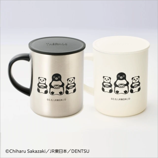 また、グッズではハミングカフェ限定のオリジナル物販商品として「Suicaのペンギン 真空断熱ケータイマグ 350ml」(ホワイトグレー/カーキ 各3,520円/ペア6,540円)を、6月13日(月)から販売します。