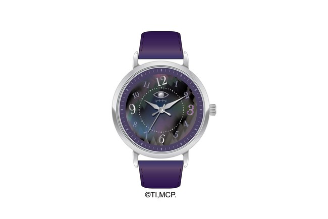 作品に出てくる『それ』がまとっている雰囲気をイメージして、腕時計全体は紫色と黒を基調に。インデックスを不揃いにすることでさらにホラー要素を演出しています。