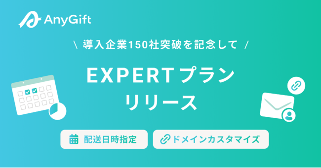 eギフト機能を自社ECサイトに導入できる『AnyGift』、リリース後1ヶ月で導入企業150社突破を記念に、新プランをリリース。ギフトを受け取る方の配送日時指定やドメインカスタマイズなどが可能に