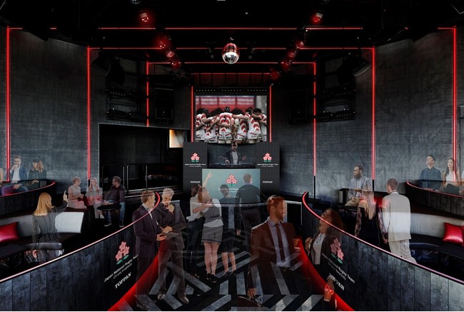 今回の会場は高層階からの眺望とDJブースを備え空間と音楽の演出が可能になるCE LA VI CLUB LOUNGE(所在地:東京都渋谷区)。迫力ある大型モニターでのライブ中継観戦に加え、スペシャルゲストによる解説、CE LA VI TOKYOならではの音楽演出、食事やフリードリンクといった、スタジアムにはないオフサイト会場ならではの快適な空間でのエンターテインメントを満喫できるイベントです。凸版印刷は、新しいスポーツの観戦スタイルを通じて、試合会場では得られない価値を創出し、日本ラグビー界の発展に貢献します。