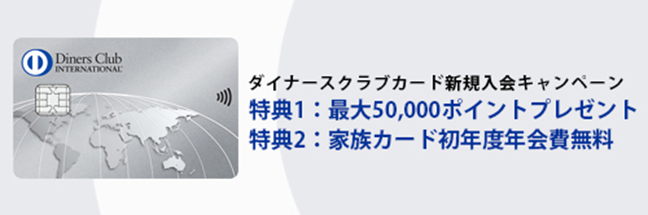 ~特典1:入会後のカード利用で最大50,000ポイントをプレゼント、特典2:家族カードの初年度年会費無料~