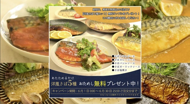 株式会社SANKO MARKETING FOODSが運営する『ひとま楽天市場店」にて2022年6月1日(水)から6月30日(木)まで、煮焼魚セットシリーズ購入者でご希望の方に『洋風さば5種セット』をプレゼントするキャンペーンを開催いたします。