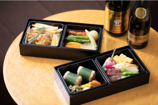 【内 容】 おつまみグルメ重(レストラン「味街道 五十三次」よりお部屋にお届け、3:00P.M.~7:00P.M.間で30分刻みで指定可能)、スパークリングワイン ハーフボトル(1室につき2本)またはノンアルコールスパークリングワイン フルボトル(1室につき1本)
