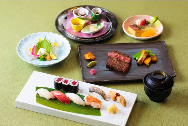 【内 容】 レストラン「味街道 五十三次」の寿司&和牛ステーキコース、高層階へのアップグレード、朝食
