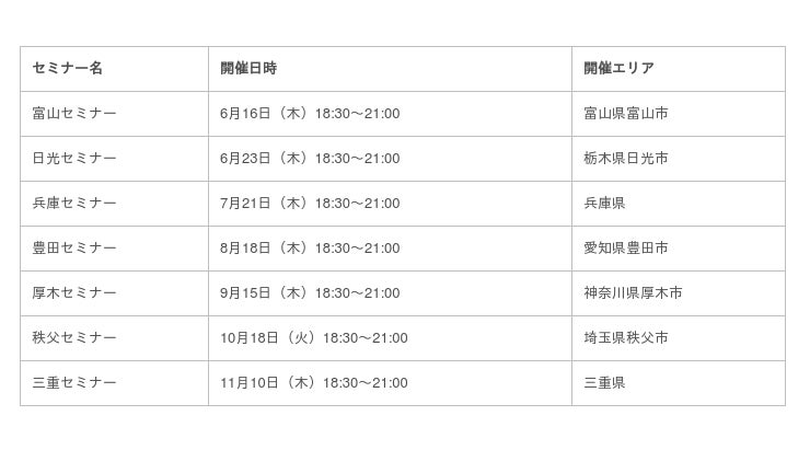 本セミナーは、全国各地から好評をいただいており、合計48地域で開催をしてきましたが、中には、「本セミナーに興味はあったが、自分の地元での開催がなく参加できなかった」というお声も届いておりました。2022年度は、そのような方にもご参加いただけるよう、これまでに開催がなかった新しい地域での開催も予定しており、更なる本プロジェクトの拡大・浸透を目指しております。