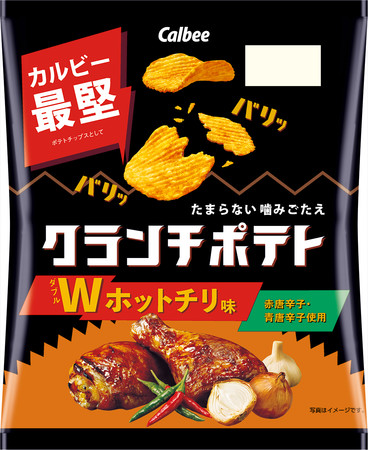 カルビーで最も堅いポテトチップスシリーズより旨辛フレーバーが新登場!堅さにピッタリな辛さ!赤唐辛子と青唐辛子を使った濃厚な味わい『クランチポテト ダブルホットチリ味』