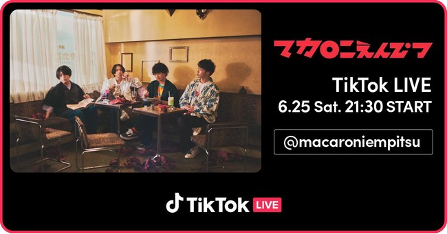 ショートムービープラットフォーム「TikTok(ティックトック)」にて、マカロニえんぴつが初のTikTok LIVEを6月25日(土)に配信することが決定しました。
