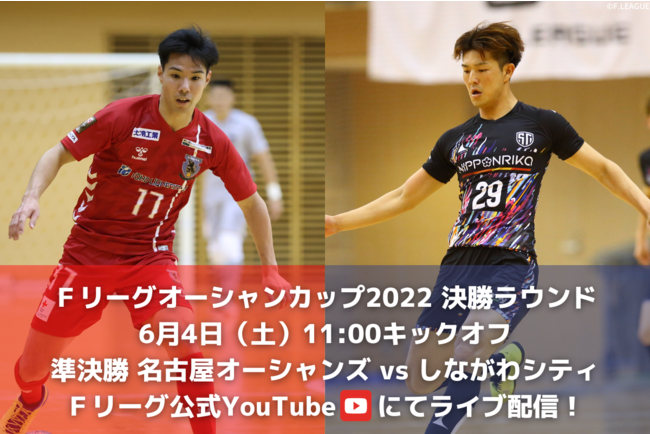 6月4日(土)駒沢オリンピック公園総合運動場屋内球技場にて、Fリーグオーシャンカップ2022 決勝ラウンドの準決勝「名古屋オーシャンズ vs しながわシティ」「ペスカドーラ町田 vs 立川アスレティックFC」の2試合を有観客で開催いたします。