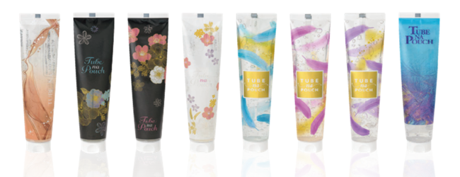 「チューブなパウチ(R)」は、一般的なラミネートフィルム製パウチに用いられる層構成のフィルムを筒状に加工し、先端にプラスチック成型品の注出口を取り付けた容器です。従来のラミネートチューブ容器よりも胴体フィルムの厚みが薄く、抽出口のパーツを独自開発の形状にすることで、内容物が軽い力で絞りやすく、高齢者や子供でも最後まで使い切りやすい構造となっています。また、胴体フィルムにバリア機能を付与し、内容物の品質を保持します。