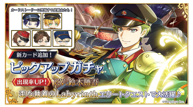 本日から「エンフィールド(CV:鈴木勝吾)」の新カード、★3「【迷路-THE TOWER-】エンフィールド」が登場する、期間限定のピックアップガチャを開催いたします。