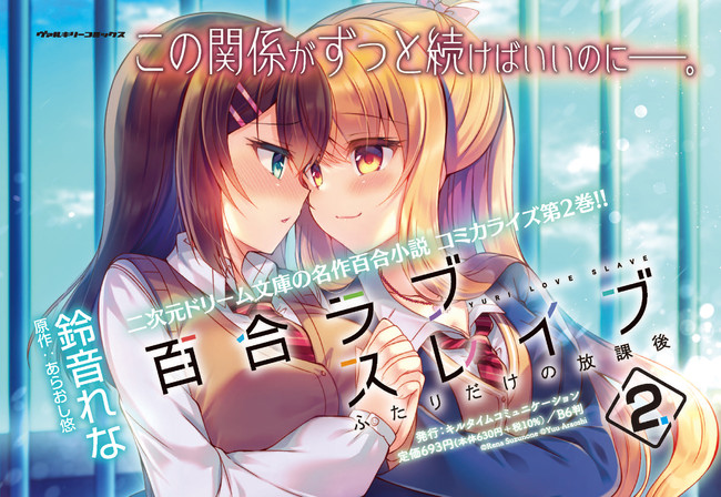 二次元ドリーム文庫の名作百合小説 コミカライズ『百合ラブスレイブ ふたりだけの放課後』待望の第2巻発売!金髪ギャル×黒髪委員長の苦くて甘い学園百合物語