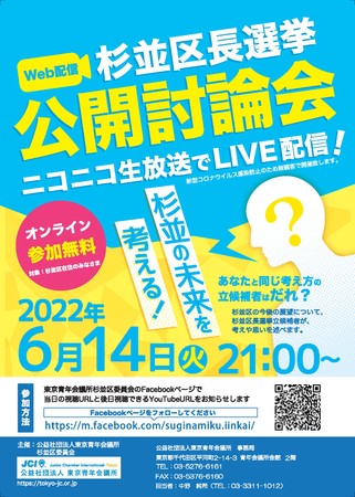 #杉並区長選挙【6月14日(火)21:00~生配信】杉並のトップを決める杉並区長選挙に伴う公開討論会を実施
