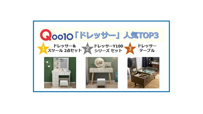 インターネット総合ショッピングモール「Qoo10」を運営するeBay Japan合同会社(本社:東京都港区、代表取締役:グ ジャヒョン)は、シンプルながら味のある雰囲気になると話題の「#ナチュラルビンテージ」な部屋作りにも合わせやすく、収納力も高い「ドレッサー」の人気TOP3 と、部屋のアクセントとしてもぴったりなおすすめのアイテムをご紹介します。
