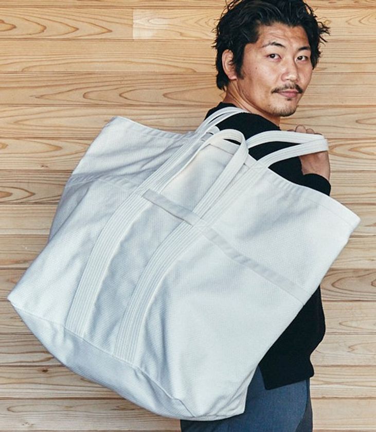 いつか柔道着以外でも、この刺し子織りの技術を活かしたものを作りたいという思いから、TSUKURIBAにご相談いただき今回のコラボが実現。寝袋などのキャンプ用品も収納できる、ビッグサイズのトートバッグと、日常遣いにちょうどいいトートバッグの2種類のバッグが出来ました。