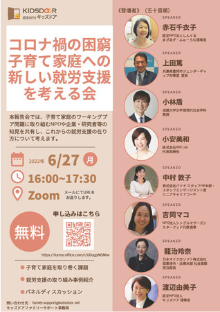 認定NPO法人キッズドア『コロナ禍の困窮子育て家庭への新しい就労支援を考える~勉強会の成果報告会~』の参加者募集