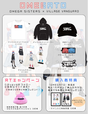 バーチャル双子Youtuber「おめがシスターズ」とヴィレッジヴァンガードのコラボアパレルブランド"OMEGATO"が始動!