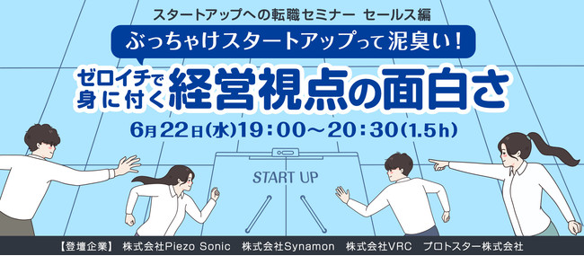 プロトスター株式会社(本社:東京都中央区、代表取締役社長:前川英麿、以下プロトスター)は、6月22日(水)にオンラインイベント【スタートアップへの転職セミナー セールス編】「ぶっちゃけスタートアップって泥臭い!ゼロイチで身につく経営視点と面白さ」(https://peatix.com/event/3266023)を開催いたします。