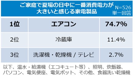 消費電力が大きいと感じる家電1位は「エアコン(74.7%)」