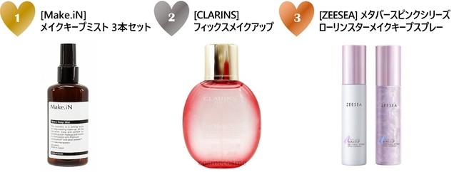 今月は、『フィクサーミスト』をピックアップして月間ランキングをご紹介します。1位には、シリコンコーティングによってメイクを長時間キープする [Make.iN] メイクキープミストがランクイン。美容成分配合により乾燥を防ぎ、長時間のメイクキープをサポートします。2位の[CLARINS] フィックスメイクアップは、メイクしたての仕上がり感を長持ちさせるミストで自然なマット状態を保ちます。3位の [ZEESEA] ローリンスターメイクキープスプレーは、保湿成分入りでうるおいを与えつつ、皮脂に強いため夕方までさっぱりとした状態で過ごせます。夏に向けて長時間メイクをキープでき、室内の空調による乾燥対策として保湿力も高いアイテムが人気の傾向です。