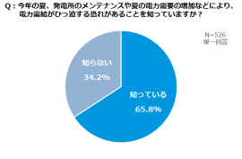 「今年の夏、電力需給がひっ迫する恐れがあることを知っていますか?」との質問に、約7割(65.8%)の人が「知っている」と回答しました。また、「電気代上昇によって家計への負担の高まりを感じていますか?」との質問には、約8割(78.9%)の人が「感じている」と回答し、多くの人がこの夏の電力需給や電気代を意識していることが明らかになりました。
