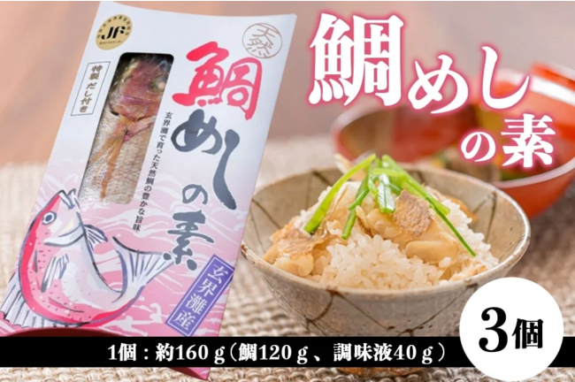 天然の鯛を1尾丸ごと使った鯛めしの素です。そのまま炊飯器で炊き、鯛の頭と大きな骨を取り除いて混ぜるだけの簡単調理で、本格鯛めしの出来あがり。