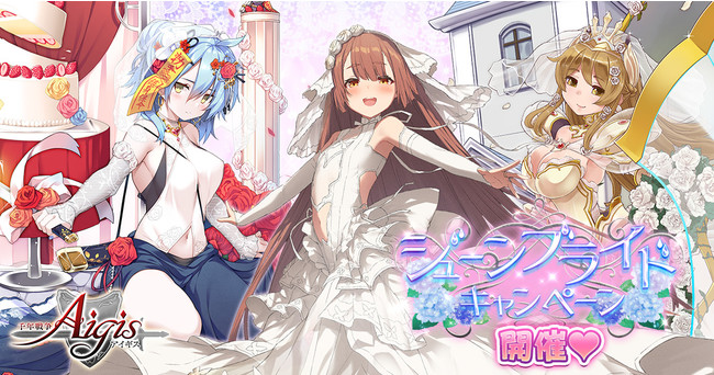 新ユニット登場のウェディング召喚や、ミッションで最高レア花嫁衣装ユニットをGETできる、ジューンブライドキャンペーンをDMM GAMES『千年戦争アイギス』シリーズにて開催中!