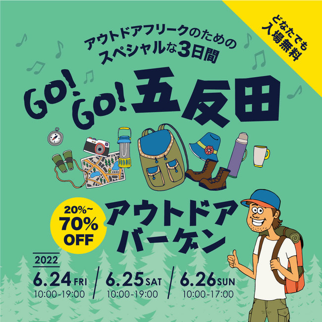 登山・クライミング・アウトドア用品総合専門店、クライミングジムを運営する株式会社好日山荘(本社:兵庫県神戸市、代表取締役社長 池田 真吾)は、6月24日(金)~26日(日)の3日間、五反田TOCビルにて「GO!GO!五反田アウトドアバーゲン」を開催します。