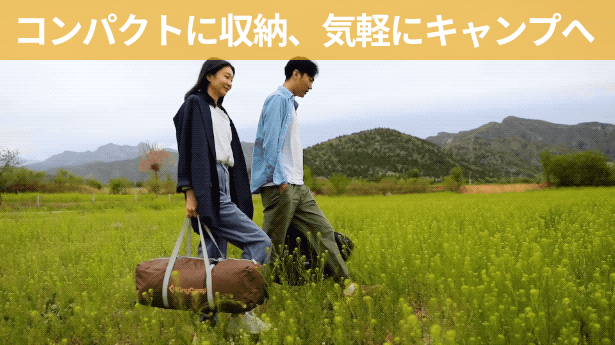 フレームやパーツも含めて総重量はわずか8.8kg。自社従来品のポリコットン生地よりも重さを3分の2もカットし、女性キャンパーでも片手で持ち運び可能。またコンパクトに収納できるため、電車やバスで移動する場合でも「大きくて持っていけない」という心配はいりません。