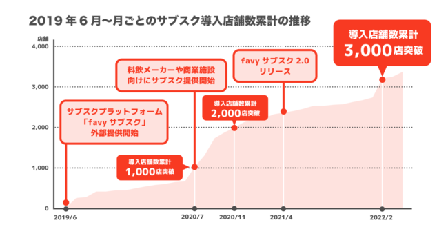 favyが提供する「favyサブスク」は、店舗運営のDX支援ツールです。favyが自社で開発しています。自社で飲食店を運営しながらサブスクを利用・改善し、2019年より飲食店を中心にサービス提供を開始。商業施設や個店などの幅広い業界にサービス提供範囲を広げ、2022年6月1日現在、全国の導入店舗数は3,200店舗を突破いたしました。