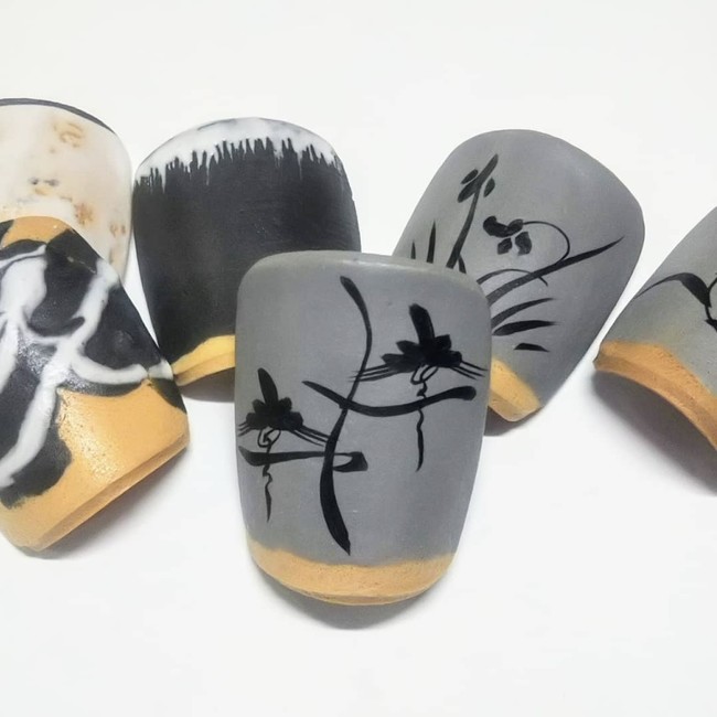 手焼きで一枚一枚丁寧に絵付けを施し、唐津焼の釉薬を再現しました。食べられる唐津焼を見て、食べて、お楽しみください。