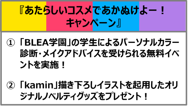 新生活もひと段落し、自分に余裕が持てるようになってきた頃です。「あかぬけ」のワードがSNSでも多く見られるなか、“あかぬけメイク”や“パーソナルカラー”にまだ馴染みがない学生の皆様にも、“自分に似合うメイク”を知って、もっとオシャレを楽しんでほしい、という想いから、BLEA学園と共同で無料イベントを開催する運びとなりました。